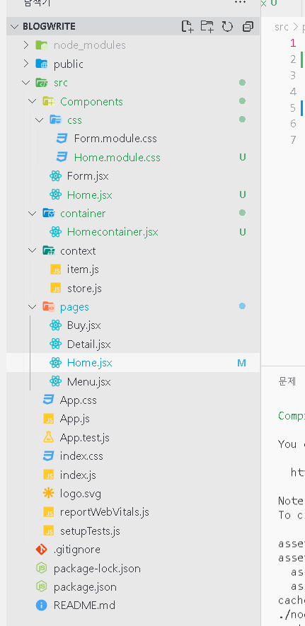 우선 어제 만든 Components 폴더에 Home.jsx 만들고(보여지는 부분)