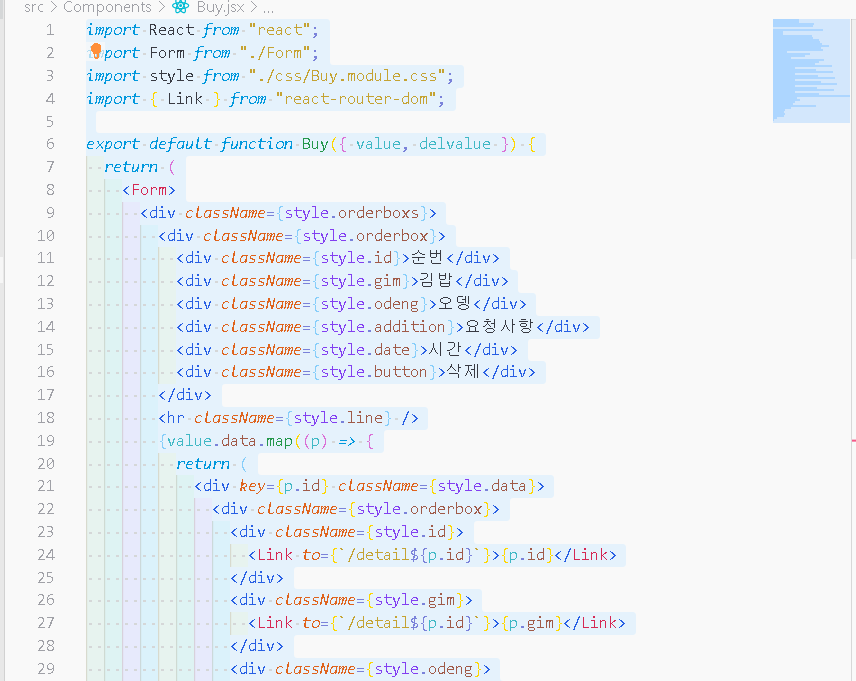 Link태그로 클릭시 해당 detailpage로 이동하게 하고 받아온 value라는 데이터를 돌면서 html 요소를 만들어주게 됩니다.