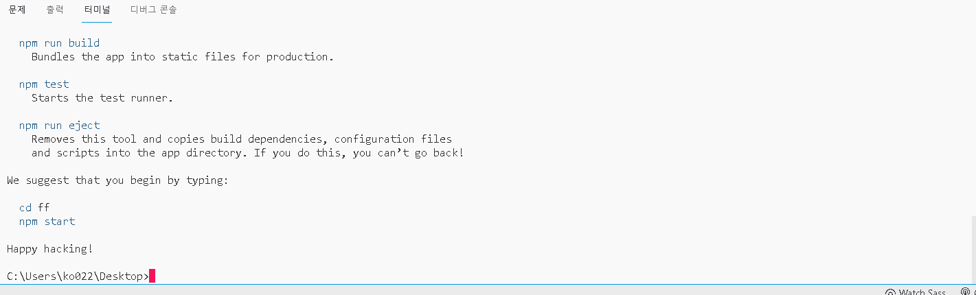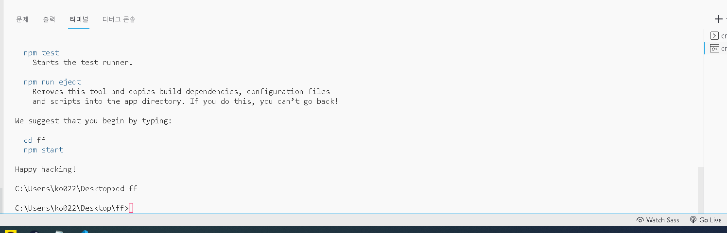 한번 터미널에 npm start 입력하고 엔터치고 기다리면 새로운 인터넷창이 새로켜진다