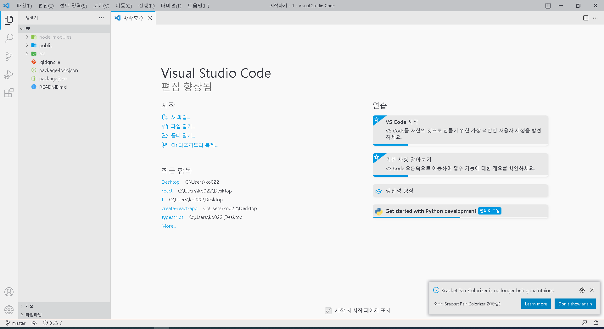 C:\Users\ko022\Desktop> 가 C:\Users\ko022\Desktop\설치한 폴더명> 이런식으로 바뀐다.