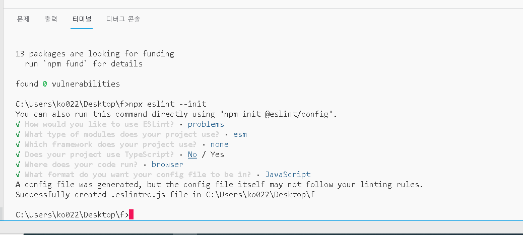 npx eslint --init 치고엔터