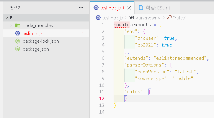 .eslintrc.js 파일 클릭해서 열기