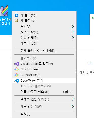 빈폴더에 우클릭 하고 vscode열어주세요