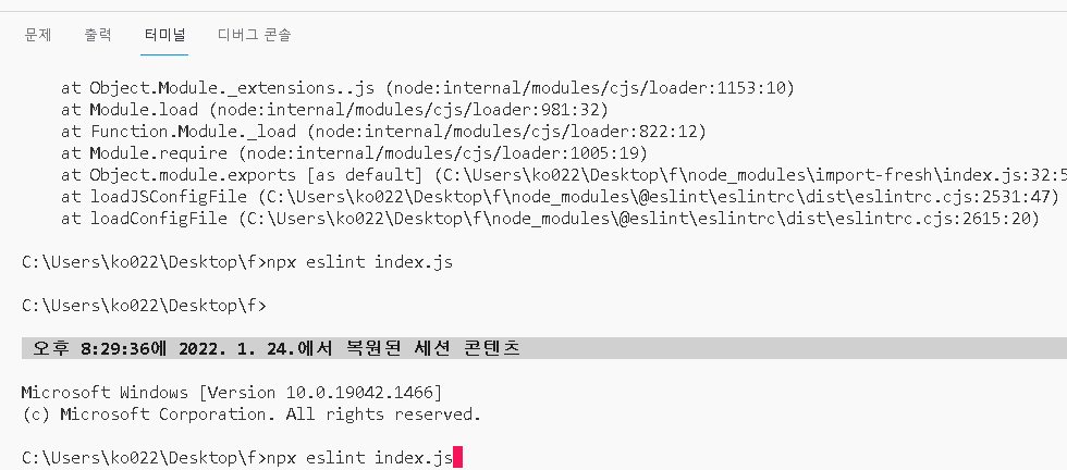 npx eslint index.js 치고 엔터