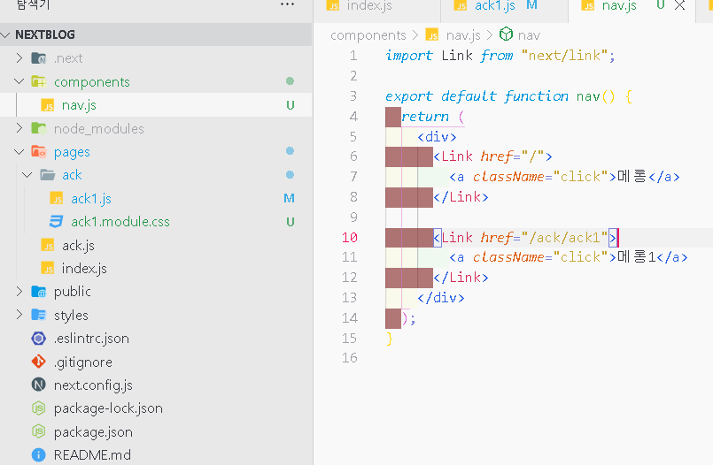 가장 상위폴더에 components/nav.js 만들고 내용 작성