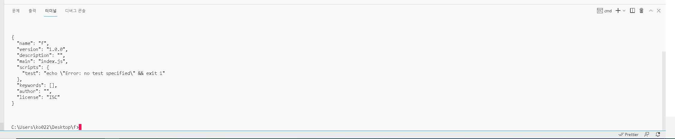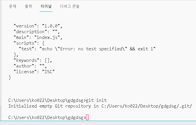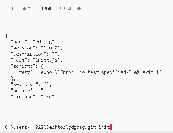 이렇게 오류가 나온다면 제대로 된거다 test 했는데 echo "Error: no test specified" && exit 1 이부분때문에 오류가 나오는것이다.