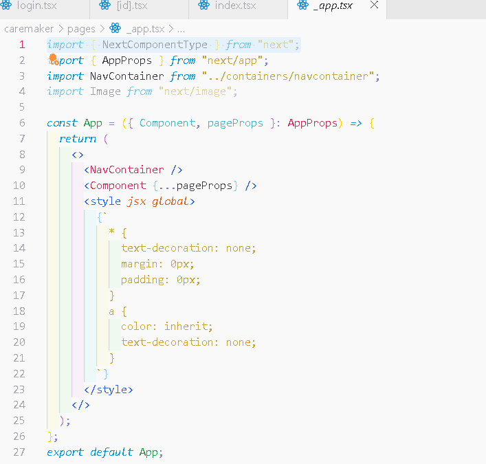 그것을 활용하여서 어짜피 모든 페이지가 _app.tsx를 활용해서 되니까 글로벌css를 저기다 적어서 모든것에 적용되도록 했습니다.