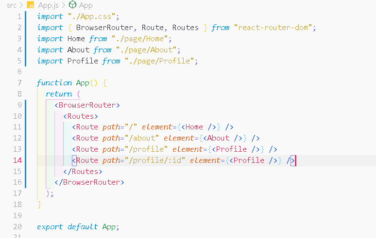 여기 routes 내부에 <Route path="/profile/:id" element={<Profile />} /> 추가해주자