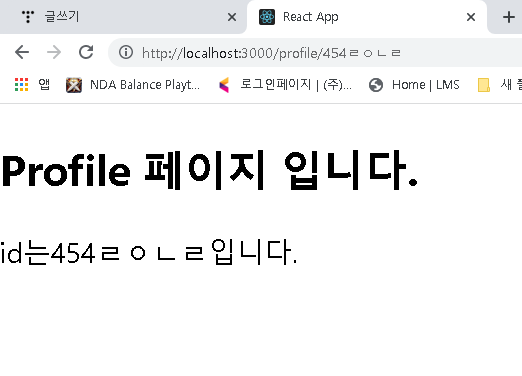 http://localhost:3000/profile 이렇게 주소뒤에 /profile을 추가하면 이렇데 된다.