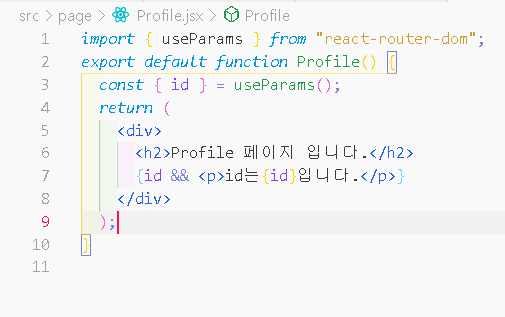 /profile/이 뒤에 뭐가 붙어있으면 그걸 id라는 요소에 저장하고profile이라는 컴포넌트를 뛰워주겠다는 의미이다.