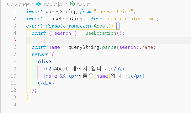 이번에는 About 페이지를 기준으로 할거에요 src/page/About.jsx로 가서 젤위에