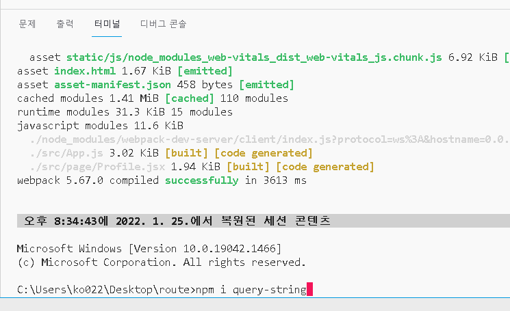 저번에 했던 폴더에서 vscode 열고 터미널에npm i query-string 으로 설치 해줄께요
