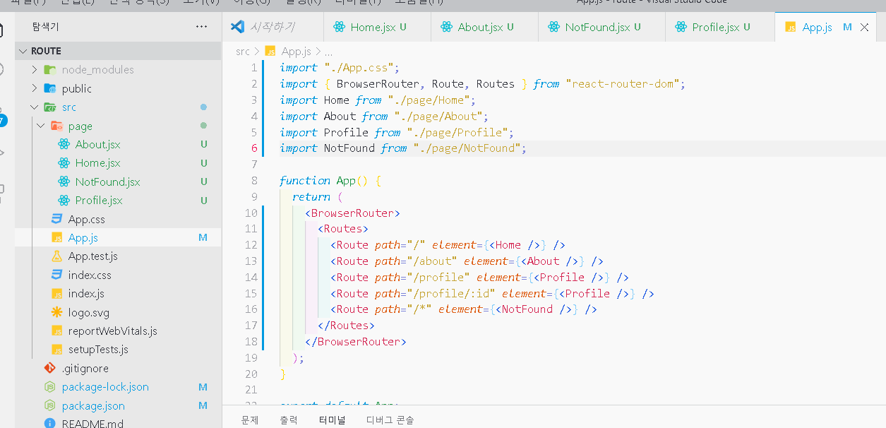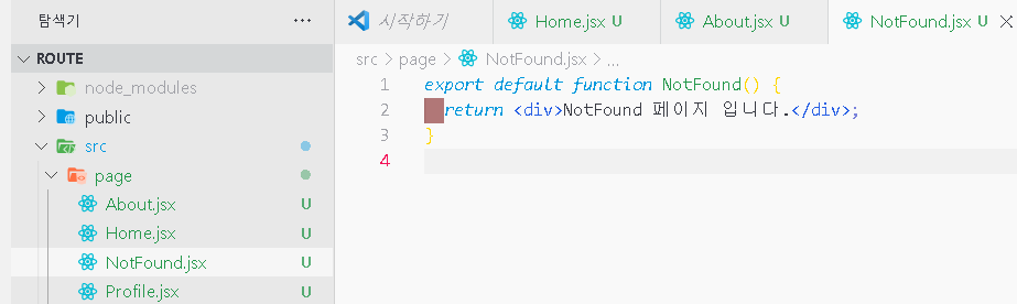 사용하던 폴더에서 코드 열어서src/page폴더에 NotFound만들고