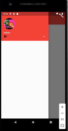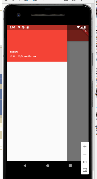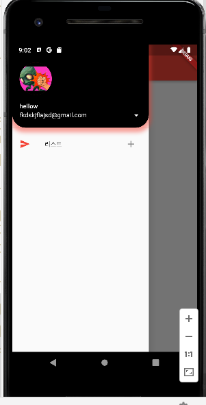 이렇게 ListView안에 패딩을 zero로 주고 UserAcoutnDraweHeader를 호출하면 젤위에 저런식으로 빨간 박스가 생기게 됩니다. 그리고 accountName에 이름 accountEmail에 이메일을 넣어주면 저렇게 두줄로 들어가게 됩니다 물론