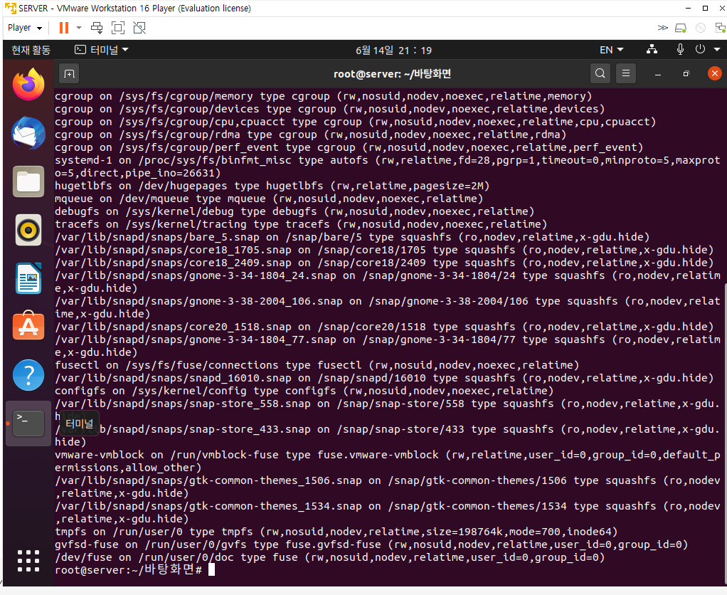 mount를 입력하면 이런식으로 어떤게 올라와있는지 볼 수 있다.