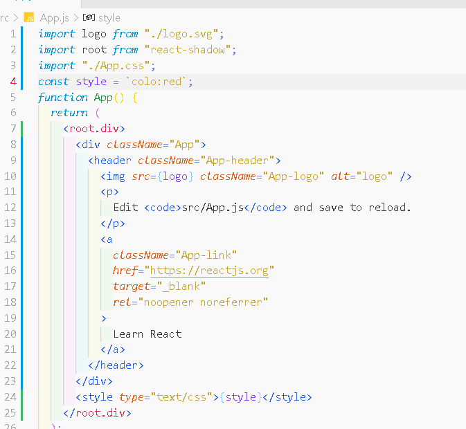 그리고 우리는 root.div내부에<style type="text/css">{style}</style>이렇게 스타일 을 넣어 줬으니 여기 내부에 css요소는 영향을 받는다.