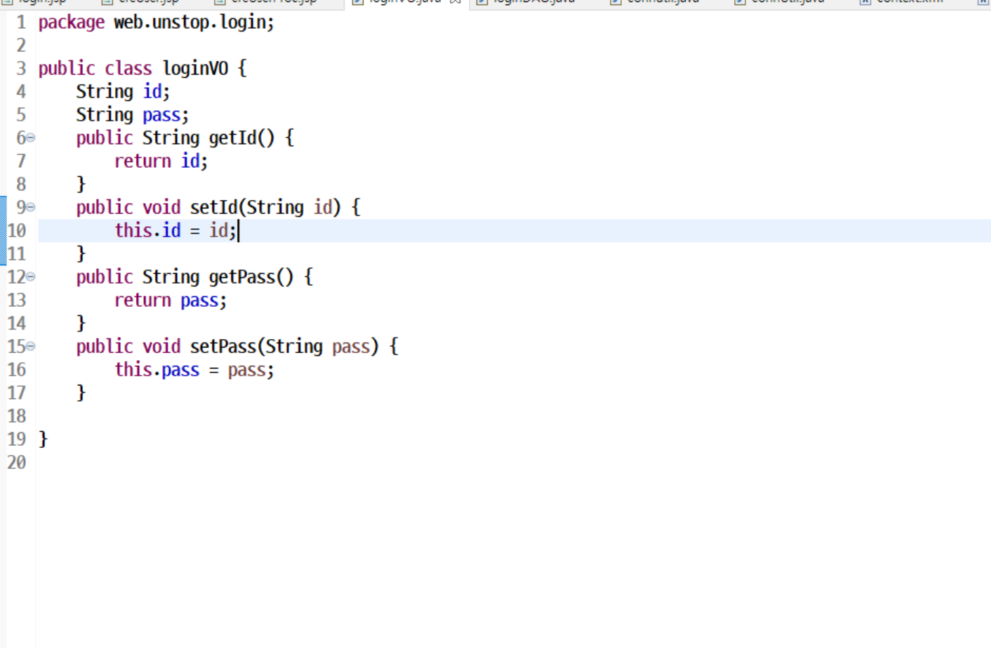 회원가입 정보를 담을 클래스인 VO 를 만들고 getter setter를 생성 해주었습니다.