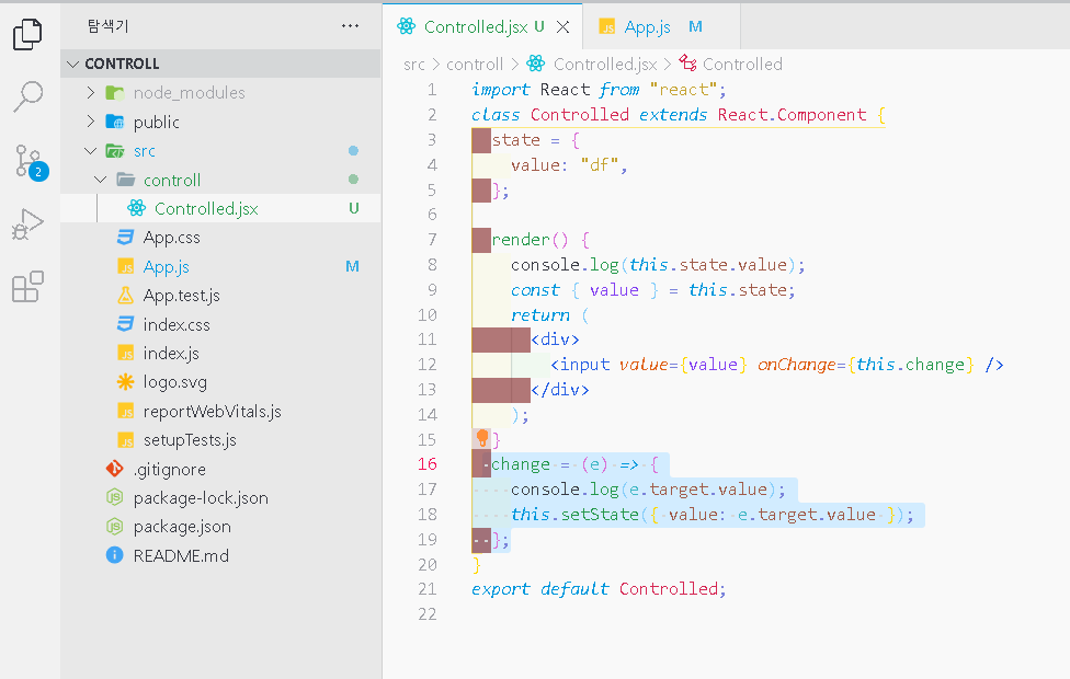 src/controll폴더 만들고 안에 controlled.jsx 만들어 주세요