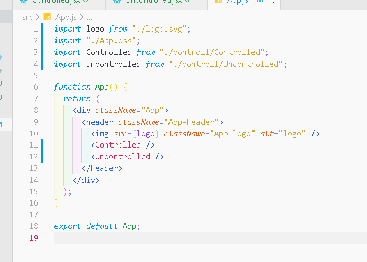 controll 폴더에 uncontrolled.jsx 내부를 이렇게 고쳐주겠습니다.