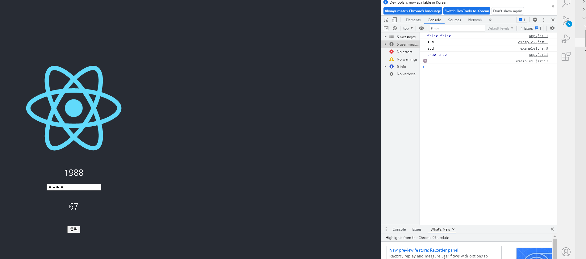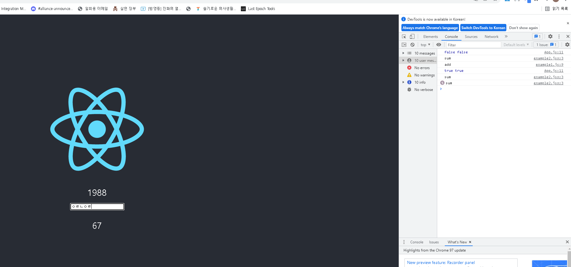 그럼이제 npm start 화면가서 input에 글자를 입력 해보겠습니다.